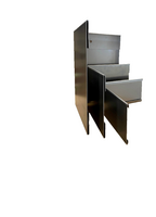 Om de uitwendige hoeken af te werken, kunnen deze hoekstukken toegepast worden. Ze zijn verkrijgbaar is 3 hoogtes. De beenlengte is 24cm. Let er op dat er bij elk hoekstuk 2 koppelplaten nodig zijn om ze te koppelen met de rechte randen. Gebruik per hoekstuk 2 fixatiebeugels en -pennen voor een goede verankering.