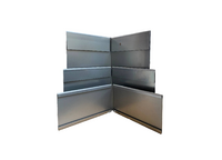 Om de uitwendige hoeken af te werken, kunnen deze hoekstukken toegepast worden. Ze zijn verkrijgbaar is 3 hoogtes. De beenlengte is 24cm. Let er op dat er bij elk hoekstuk 2 koppelplaten nodig zijn om ze te koppelen met de rechte randen. Gebruik per hoekstuk 2 fixatiebeugels en -pennen voor een goede verankering.