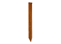 De Fixatiepen past precies in de driekantige opening van de fixatiebeugel. De pen moet geheel door de beugel heen 'geslagen' worden en zal met de omgebogen rand op de bovenrand van de beugel blijven hangen. Hierdoor wordt de borderrand eenvoudig gefixeerd in de grond. Als het staal geheel geoxideerd is, zitten de fixatiebeugel en -pen en borderrand aan elkaar vast en w/ordt het nog meer één stevig geheel. De B8/12/20 is er in 2 lengtes in passen in de fixatiebeugels van de borderranden van 8, 12 en 20cm hoog. De B35 past in de fixatiebeugel van de borderrand van 35cm hoog.